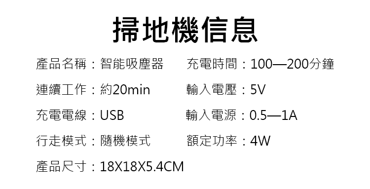 【清洁小能手】全自動智能掃地機器人,大吸力 + 強續航,一次完成吸塵+拖地