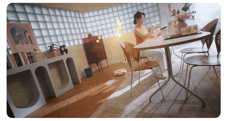 【懶人救星】不用自己動手,它就能把家裡打掃得乾乾淨淨!會自己規劃路線,桌底、床底都能鑽進去掃。吸力超強,頭髮、灰塵、餅乾屑統統吸走,還能順便拖地,地板亮晶晶!沒電了自己回去充電,充完繼續掃。手機一點就能指揮它工作,超方便!工作起來安安靜靜,不會吵到人。