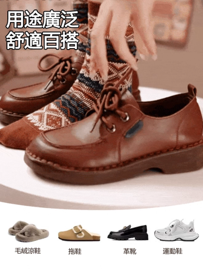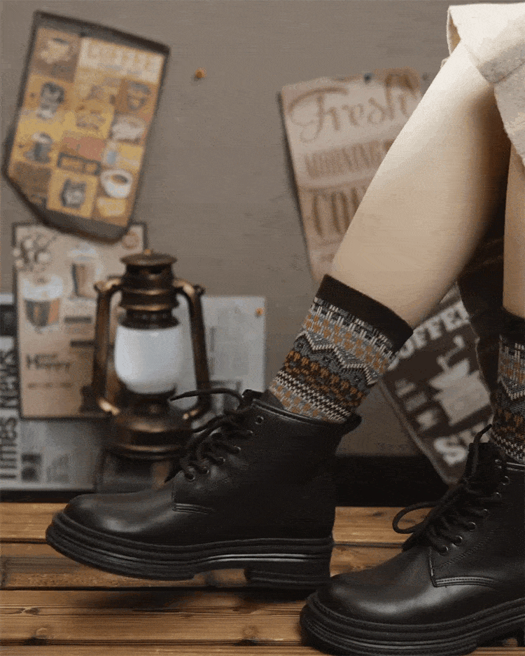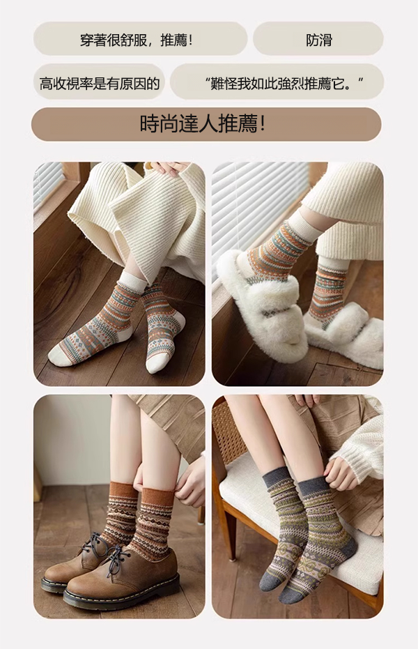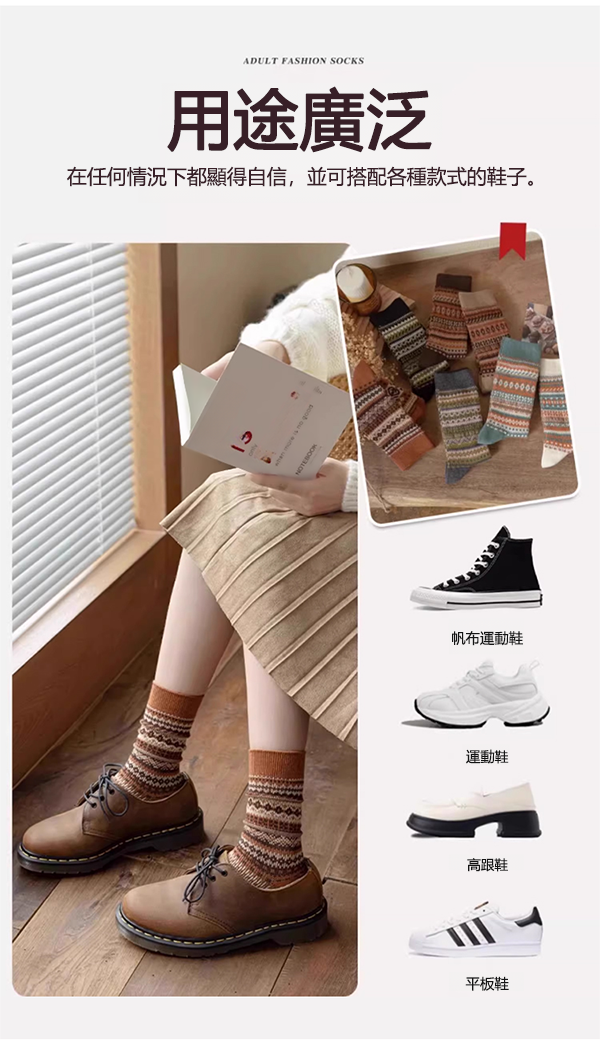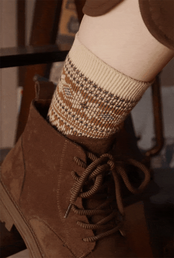 軟糯親膚且透氣吸濕,久穿不悶腳。中筒長度精準卡在小腿最細處,自然堆疊的褶皺能修飾腿型,視覺拉長線條。融入復古條紋等元素,搭配小皮鞋、馬丁靴或 JK 裙都適配,甜酷風與學院風輕鬆切換。