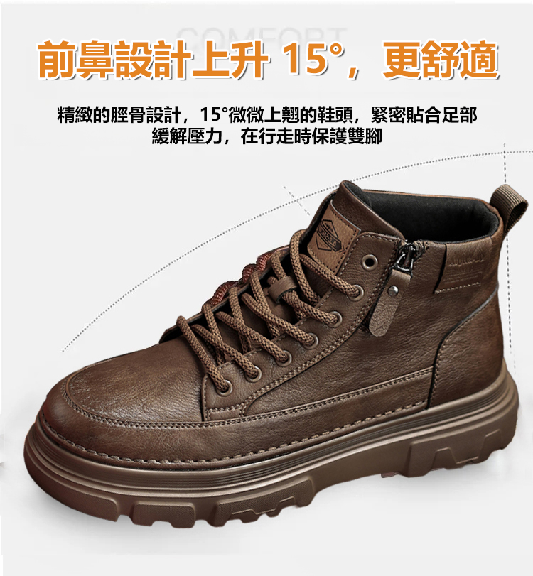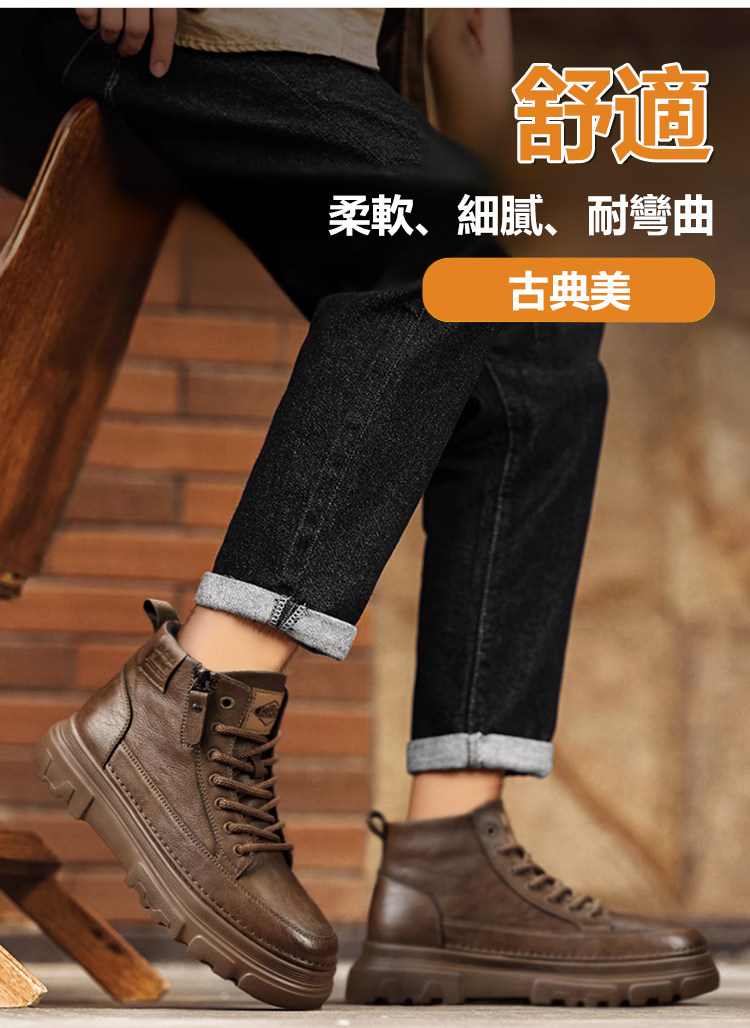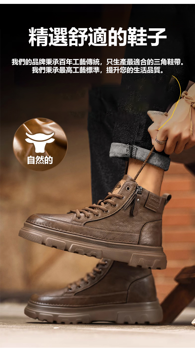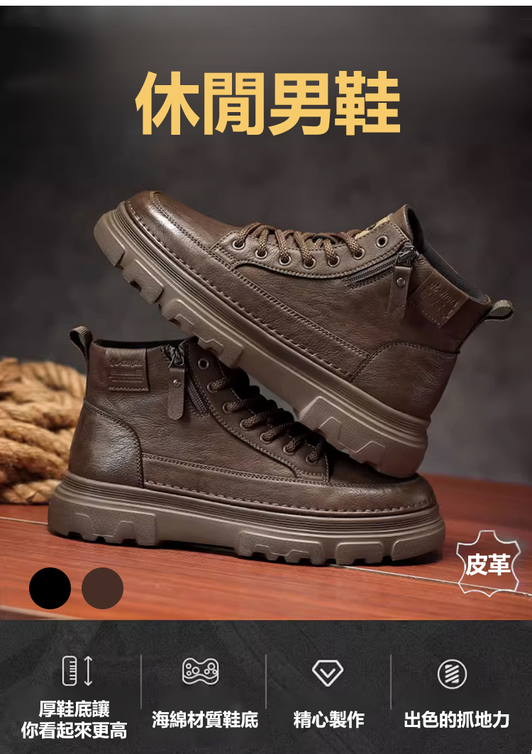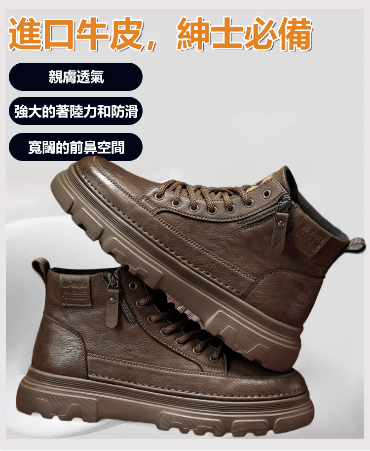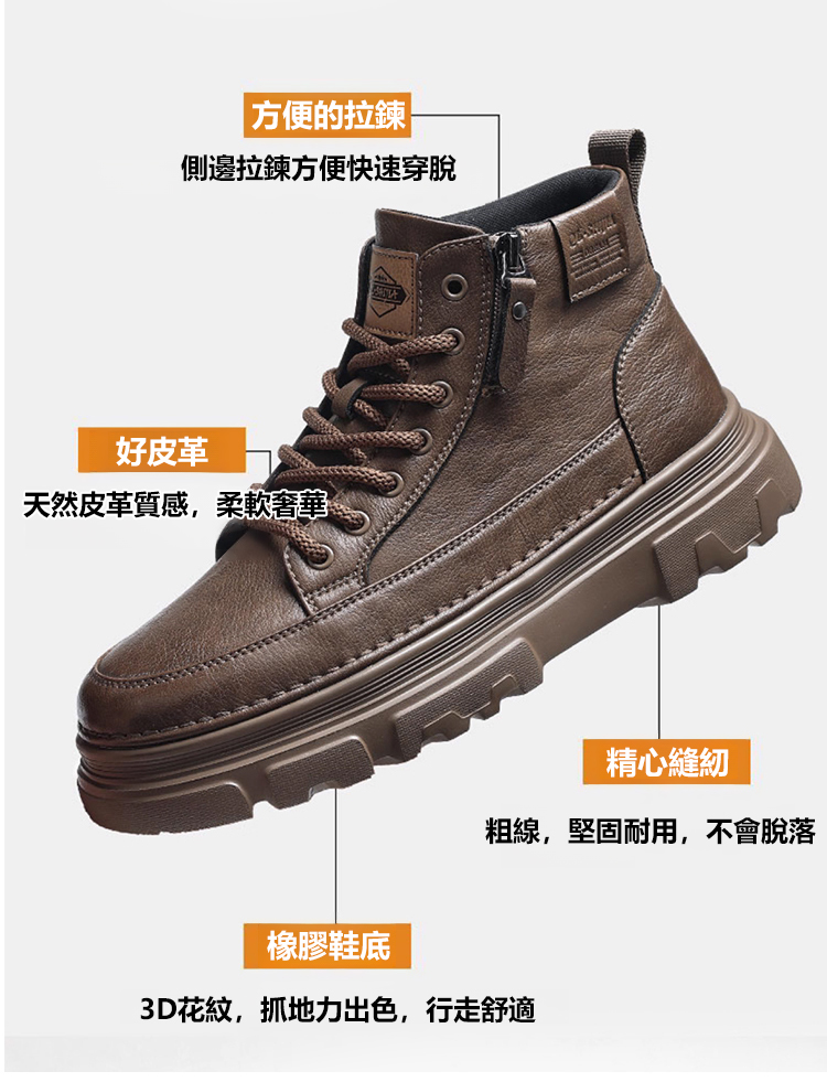 【免繫帶-側拉鍊】高筒休閒男鞋,隱形增高5厘米,梅雨季防滑還防潑