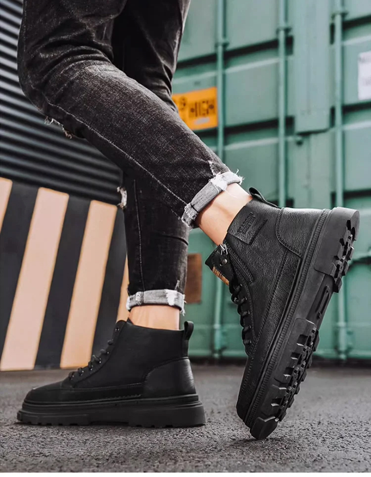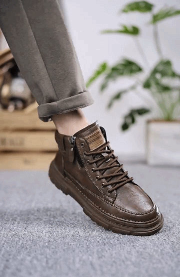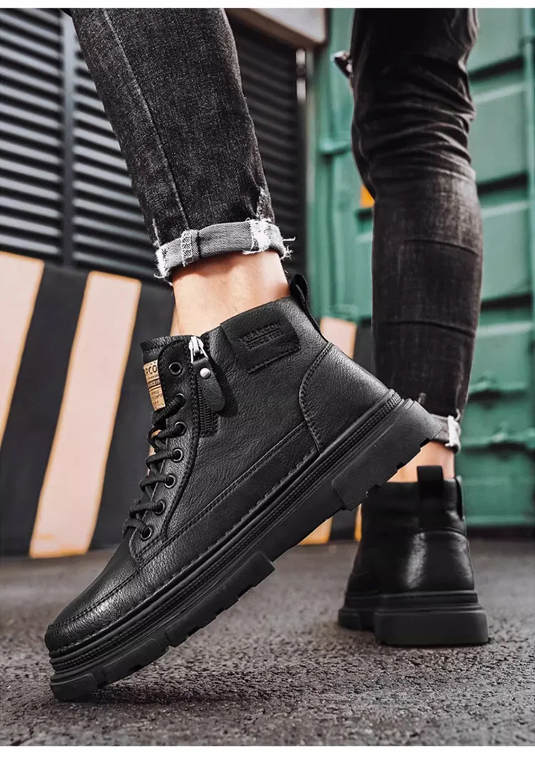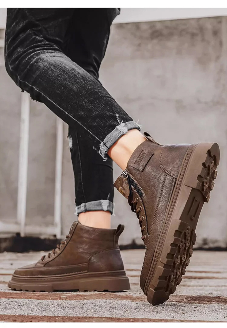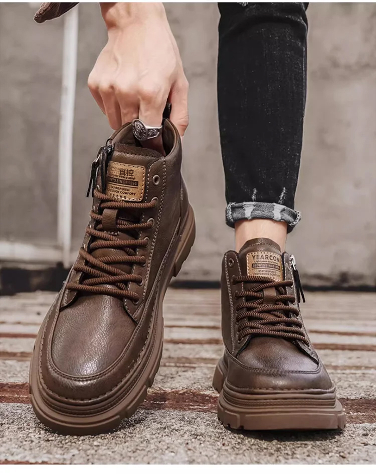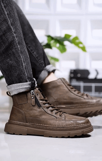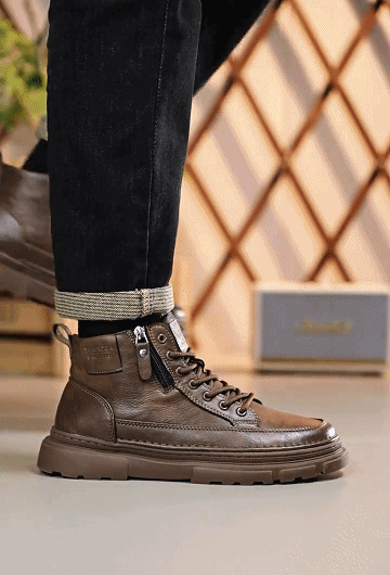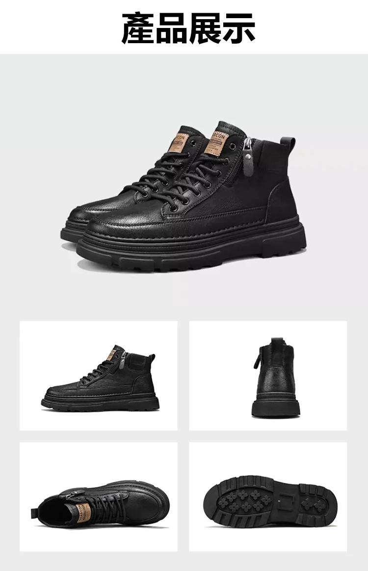 【免繫帶-側拉鍊】高筒休閒男鞋,隱形增高5厘米,梅雨季防滑還防潑