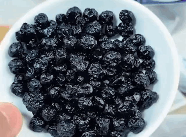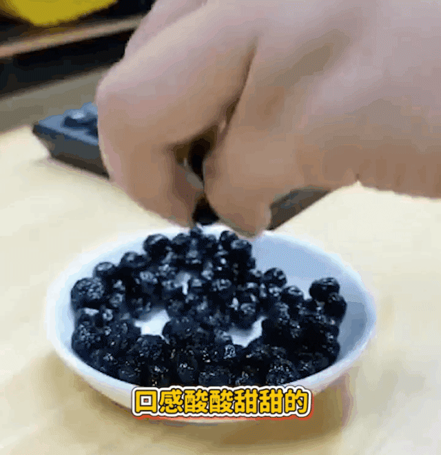 藍莓乾配酸奶,酸甜嚼得到果肉,還能補花青素。每顆都肉嘟嘟的,咬下去軟而不糯、韌而不硬,酸甜味兒裹著果肉嚼,解饞又不費牙