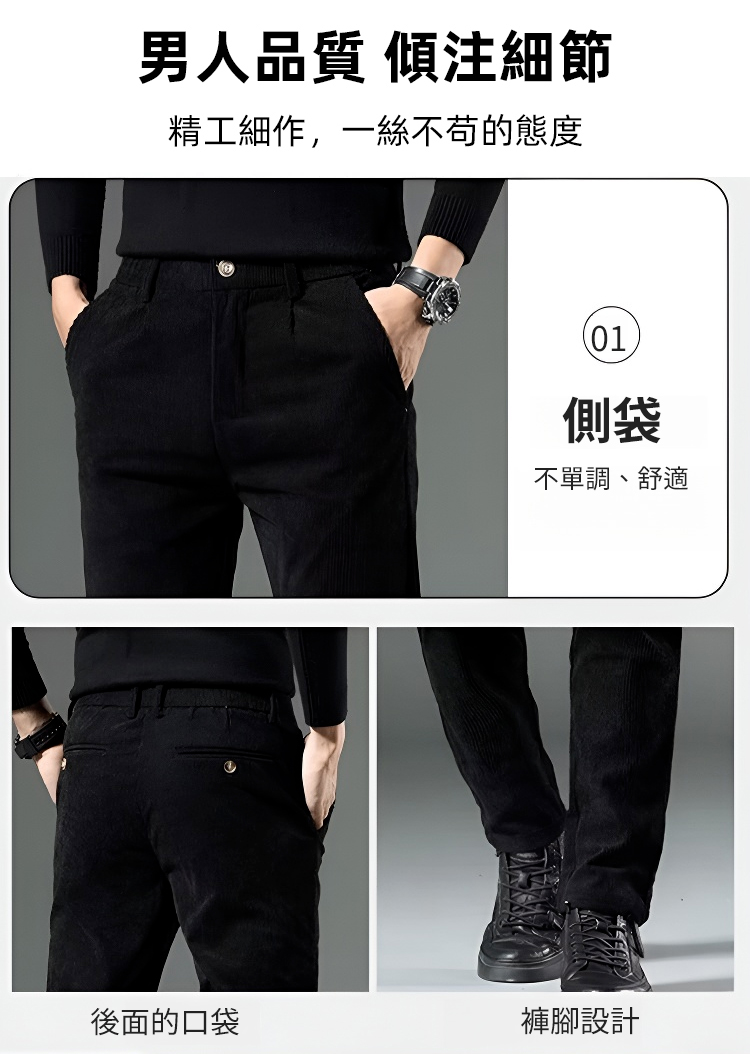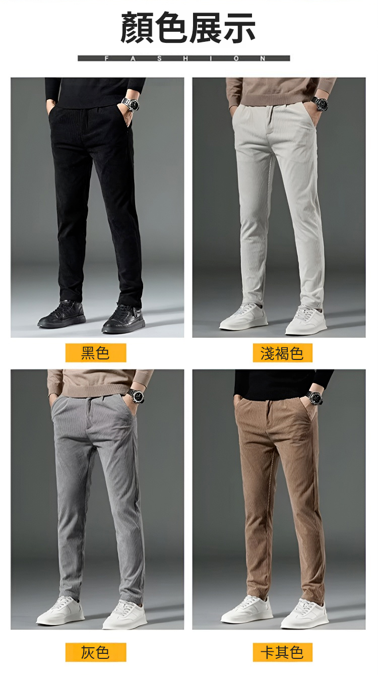 燈芯絨休閒褲男秋冬休閒直筒,穿上超舒服,抗皺不黏毛,高腰設計顯腿長