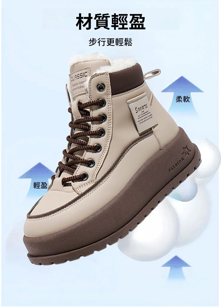 韓版加絨保暖增高休閒雪靴,零下 20℃鎖溫不凍腳,厚底隱形增高不笨重,高幫護踝還顯腿長