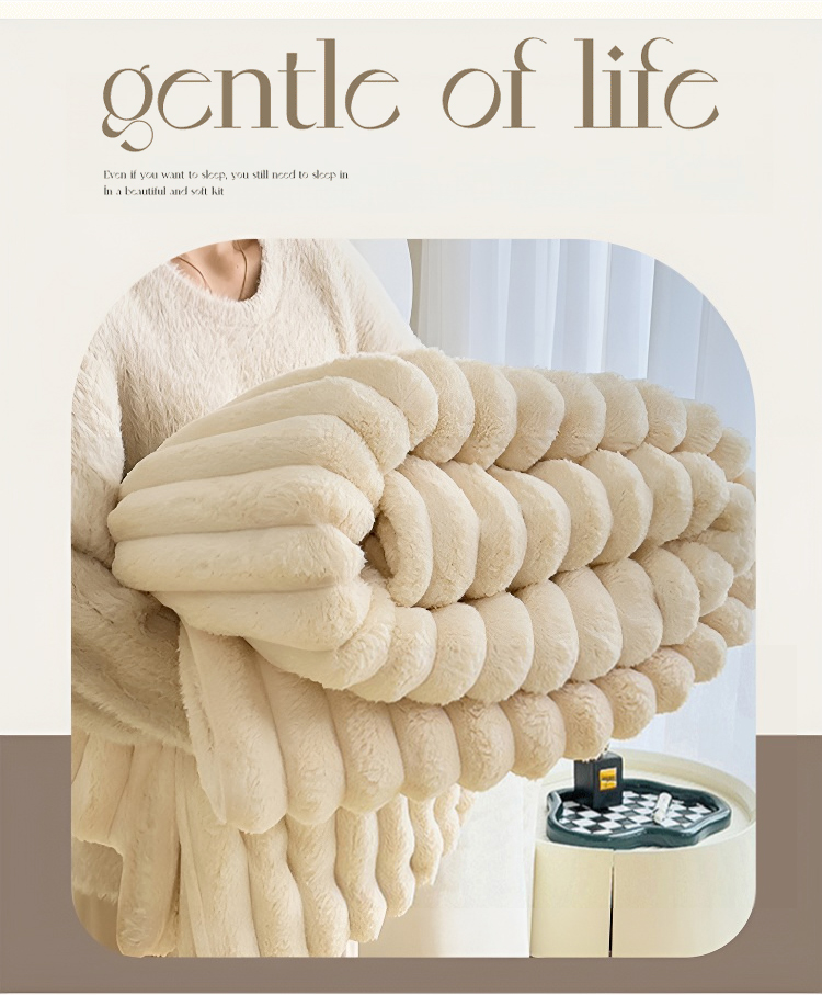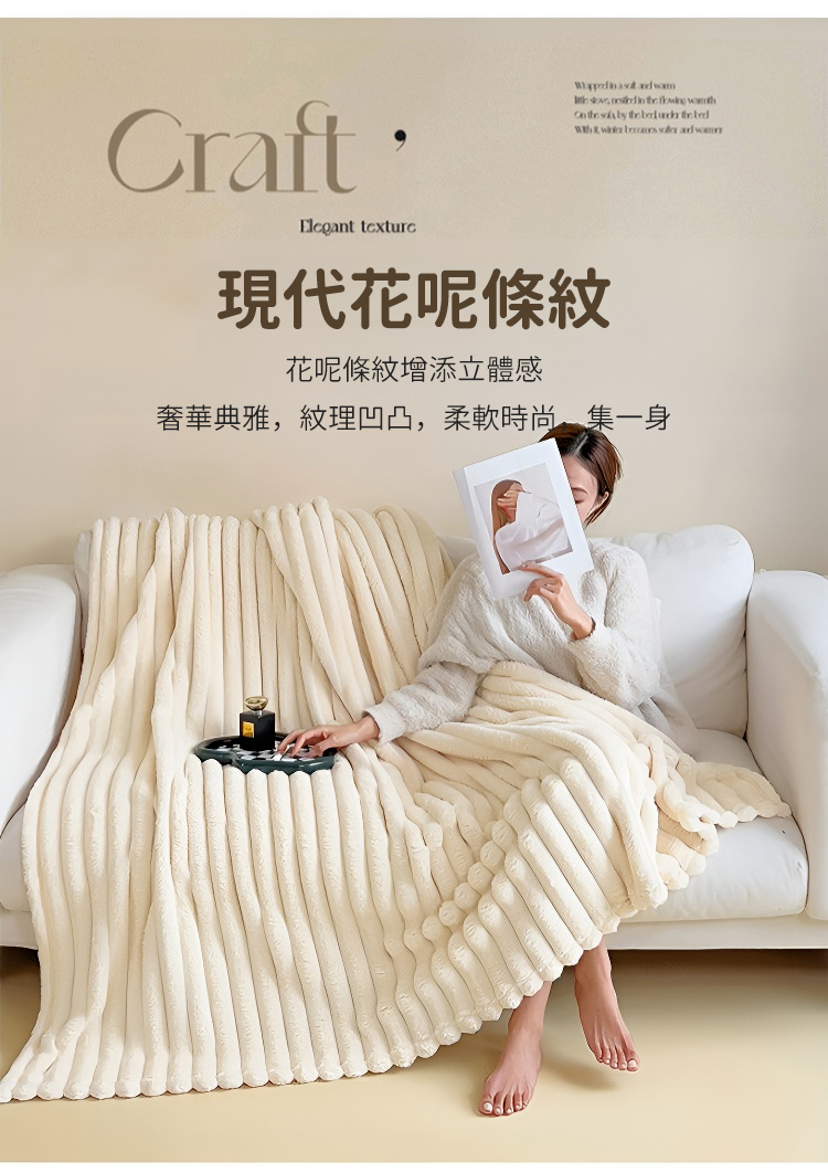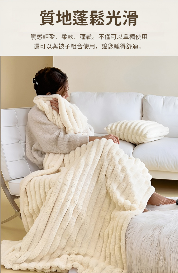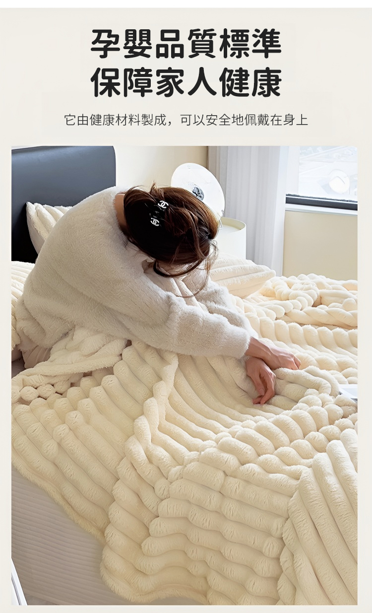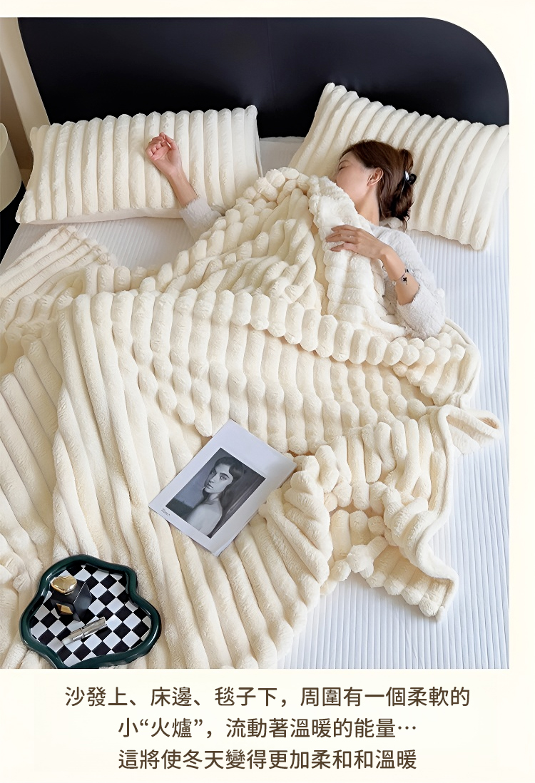 觸感軟糯如雲朵般親膚,無靜電不掉毛,敏感肌也能放心貼膚使用。雙倍加厚工藝搭配緊密織造,鎖溫能力超強,寒冬裹著瞬間暖透全身,卻輕盈不壓身,一毯多用超實用。