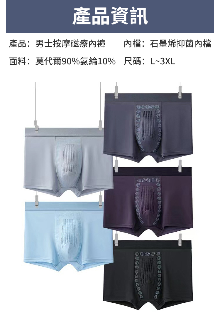 男士按摩磁療內褲,材質柔軟親膚,吸湿排汗不悶熱,寬鬆腰頭無勒痕